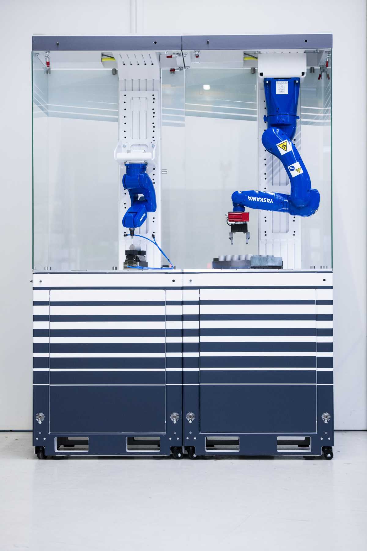 ... přebírají úkoly, jako je měření / testování, předběžné a následné zpracování, montáž / spojování nebo čištění. Funkce lze přizpůsobit a vzájemně kombinovat a rekombinovat.
